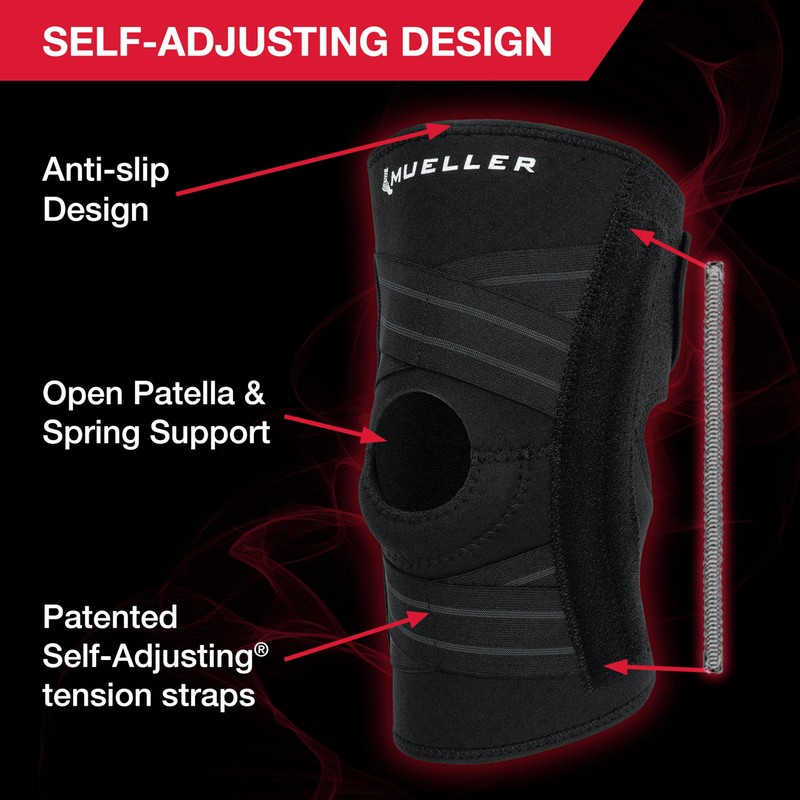 MUELLER Sports Medicine Self Adjusting Knee Brace for Men and Women, Knee Stabilizer for Compression and Pain Relief Support, Ideal for Arthritis, Sprains, Black, One Size