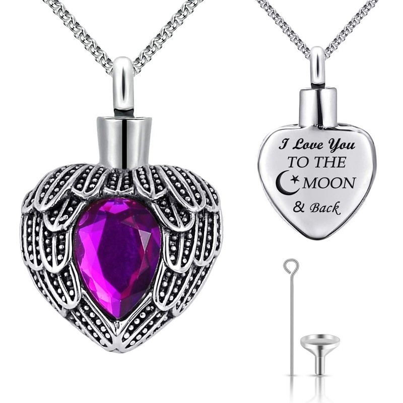 MUERDOU Urn Necklaces for Ashes Angel Wing Birthstone Charm Heart Cremation Jewelry Keepsake Holder Memorial Necklace Pendant