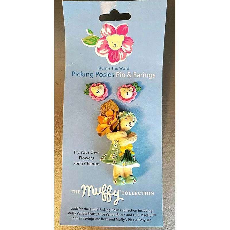 Muffy, NABCO Muffy Vanderbear Collections Picking Posies Pin & Earrings Jewelry New on Card
