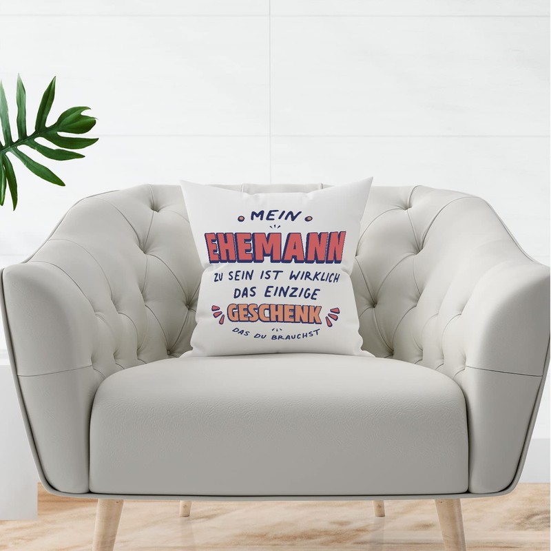 MUGFFINS HUSBAND Cushion Padding included - in German - Geschenk das du Brauchst - Funny gift - Pillow: cover and filling 15.7x15.7 inches