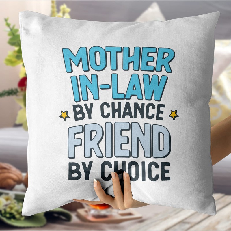 MUGFFINS MOTHER IN LAW Cushion Padding included - in English - By Chance Friend By Choice - Funny gift - Pillow: cover and filling 15.7x15.7 inches