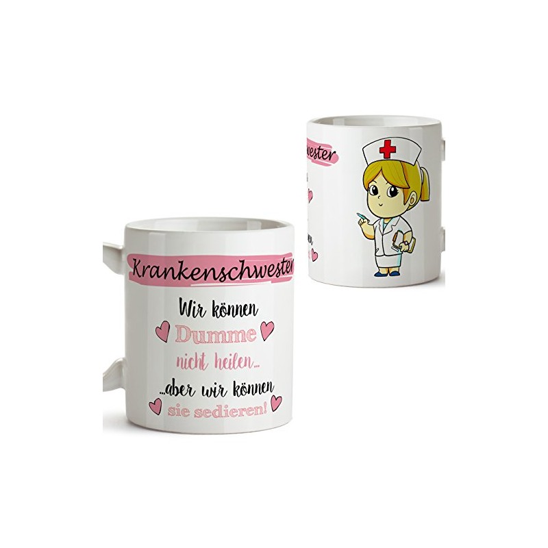 Mugffins Original Kaffeetasse als Geschenk für Krankenschwester - Wir können Dumme Nicht heilen Aber wir können sie sedieren! - 350 ml - Schöne und lustige Tassen mit Sprüchen, zu verschenken