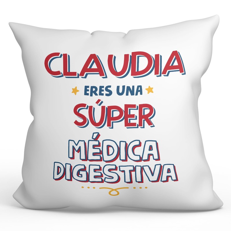 Mugffins Personalised Cushion with Filling with Saying for Doctor for Digestion Woman - In Spanish - Eres Súper - 40 x 40 cm - Individually Adjustable Gift for Employees