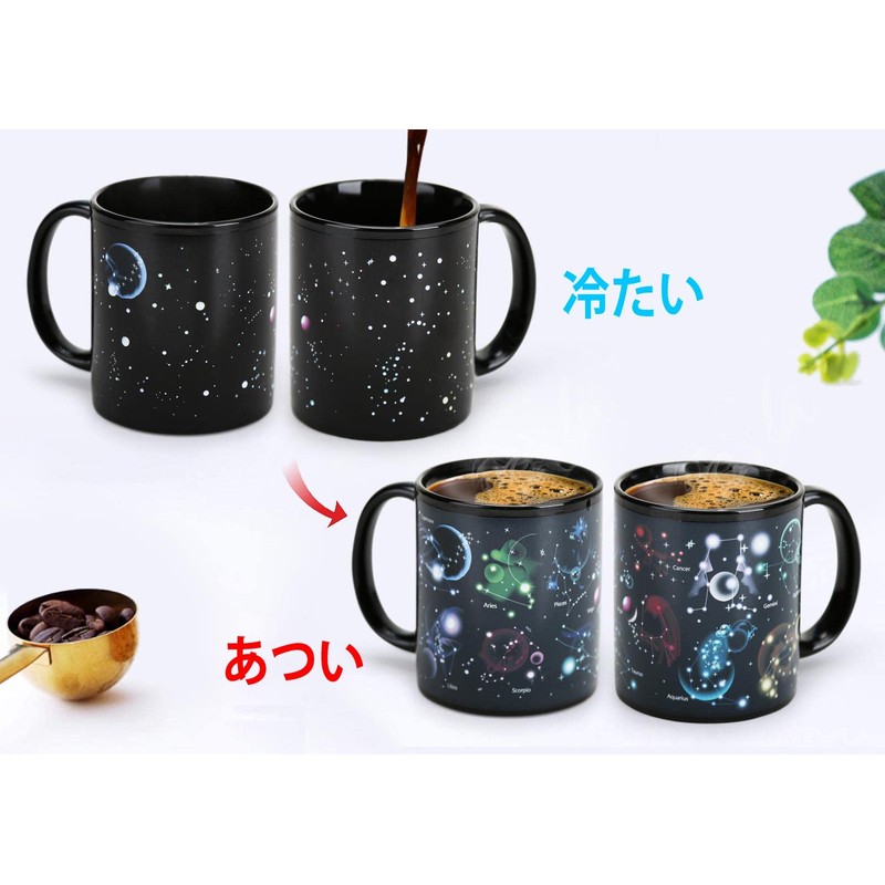 - UNIQUE TARNISH CUPS: When filled with cold liquid or nothing inside, it looks like a star cup, but when you pour hot liquid, the 12 zodiac will magically appear. The color variation effect is attractive all around