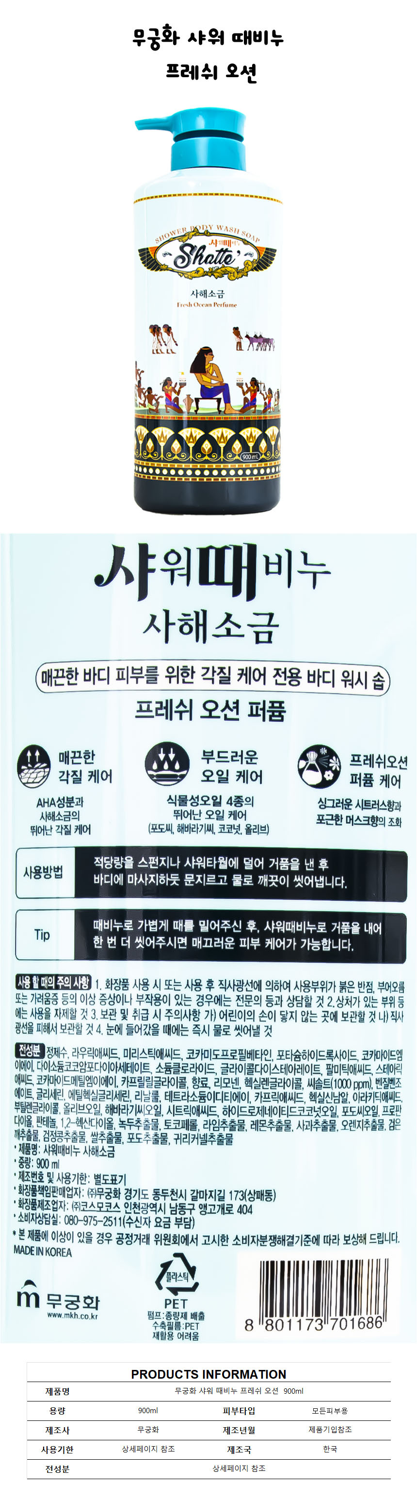 Mugunghwa Fresh Ocean Shower Scrub Soap 900ml 5ea