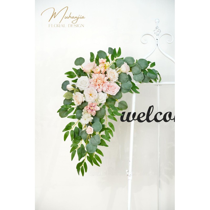 Muhanjia Wedding Sign Faux Flower Swag (Pack of 2) for Ceremony Party Reception Entrance Floral Decor Wall Easel Stand for Wedding Poster Welcome Sign (Pink)