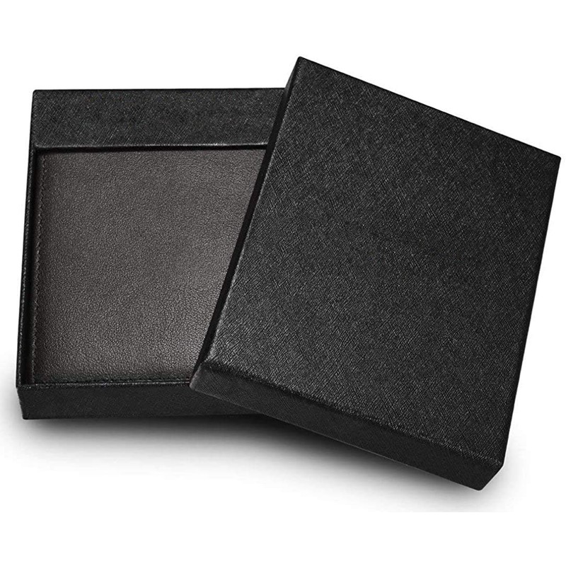 MUITON RFID Protection Bifold Leather Pocket ID Window-in Gift Box, Essential Black, Wallets for Men