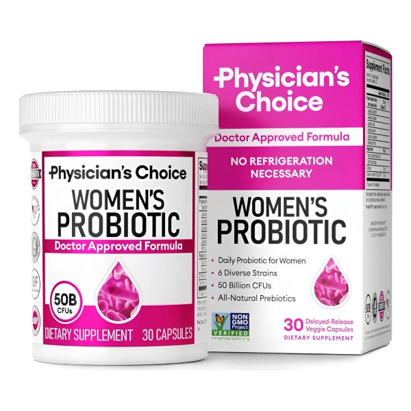 Con 50 mil millones de UFC de probióticos, prebióticos e ingredientes poderosos que incluyen extracto de arándano y D-manosa, Physician's Choice Women's Probiotic proporciona una fórmula todo en uno óptimamente equilibrada en una cápsula de liberación retardada para respaldar el sistema digestivo, inmunológico y urinario.