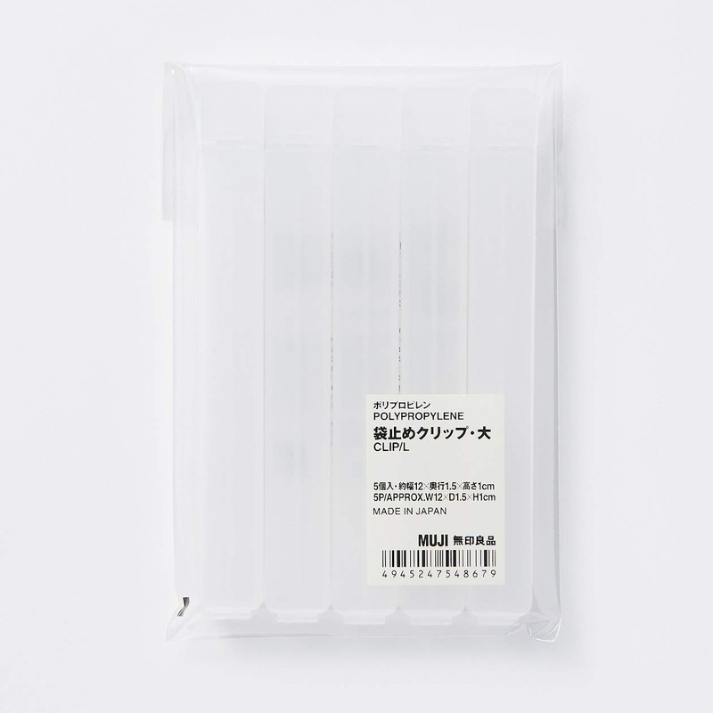 MUJI 47548679 Polypropylene Bag Retainer Clips, Large, 5 Pieces, Width 4.7 x Depth 0.6 x Height 0.4 inches (12 x 1.5 x 1 cm), Translucent