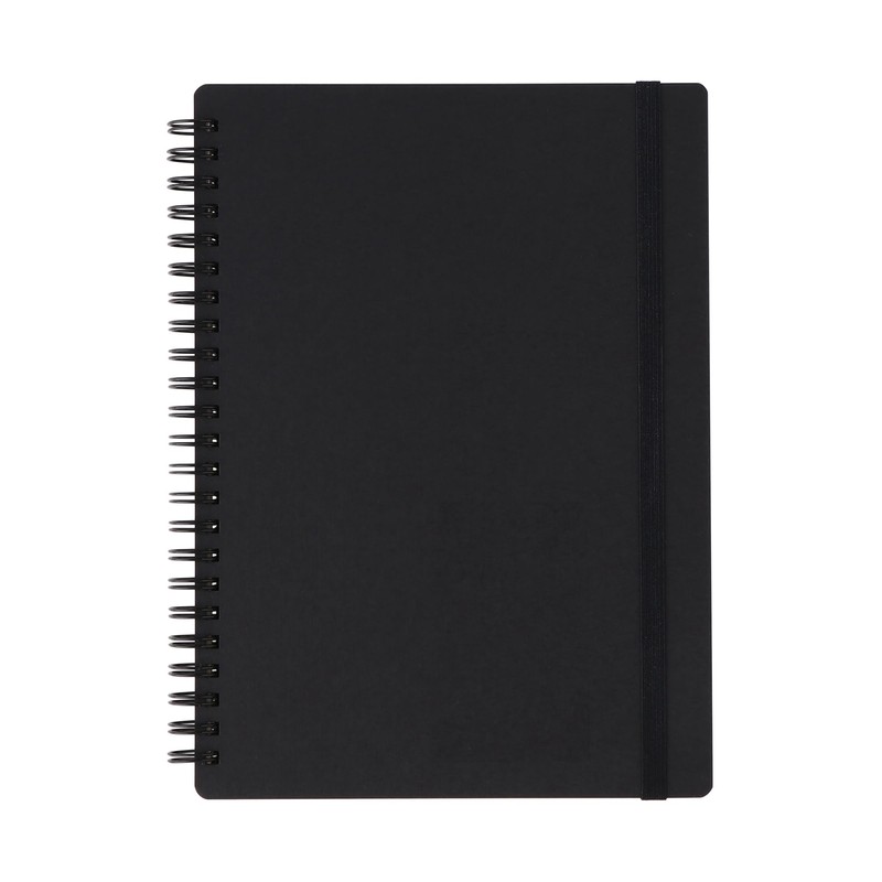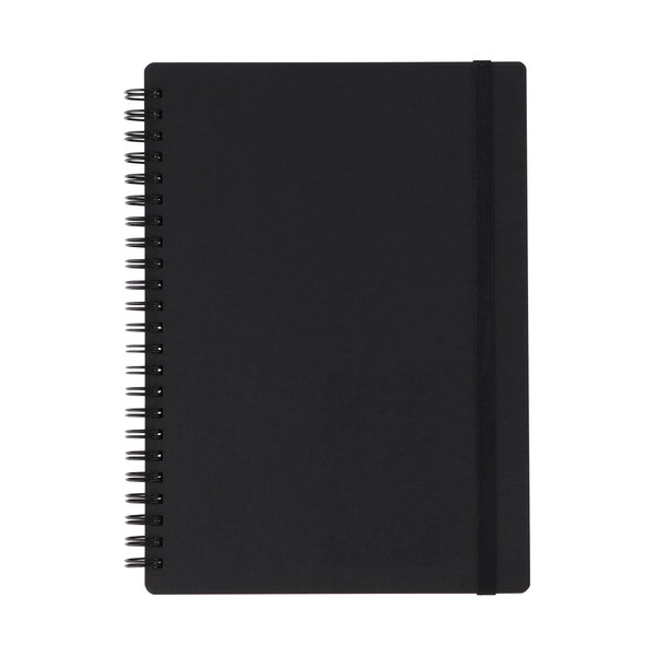 Muji NAA39A8A Premium Paper, Double Ring Notebook, with Rubber Clasp, Black, A5, 80 Sheets, 0.2 inch (6 mm) Ruled