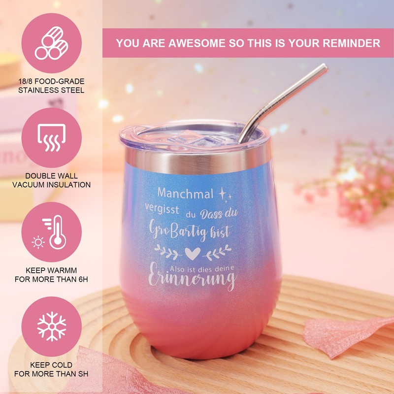 - Birthday Accessories Information The stainless steel wine glass in birthday gift set is made of food grade stainless steel, with a double layer outer wall, which is sturdy to ensure that your drink stays hot or cold for a long time; The bath products are handmade with 100% pure natural and vegan ingredients, which are environmentally friendly and non-toxic. The aromatherapy candle uses lavender fragrance that can help sleep; the entire accessory set is carefully selected and of high quality.