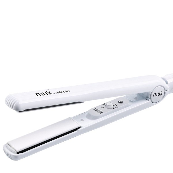 What are the benefits and features of Muk Style Stick White?- Tourmaline ceramic plates for smooth, shiny, and healthy-looking hair.