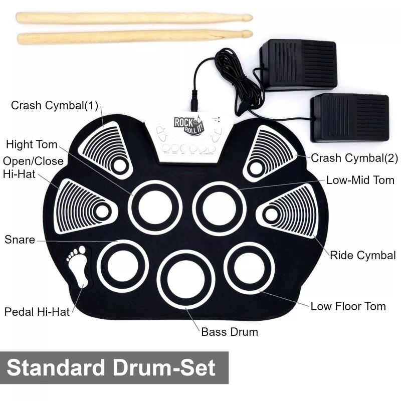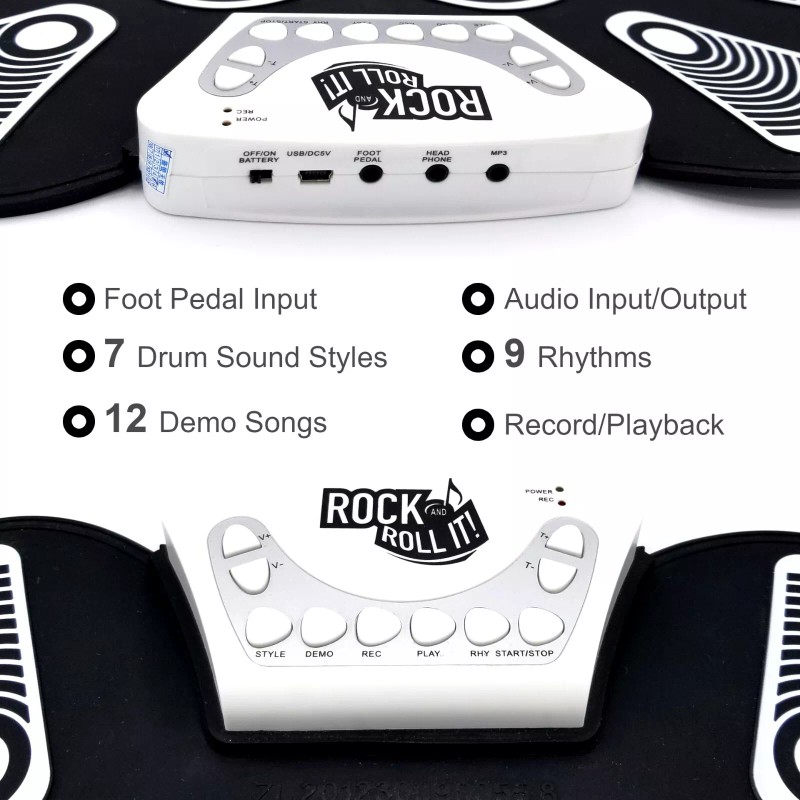 - Rock out, then roll it up! Award winning, flexible: completely portable drum by MukikiM with 2 drum sticks + 2 pedal