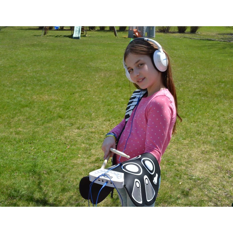 - Includes 2 drum sticks and pedals for the bass drum: & hi hat - giving the feel of playing a real drum!