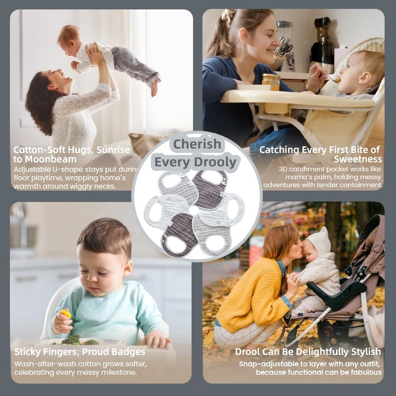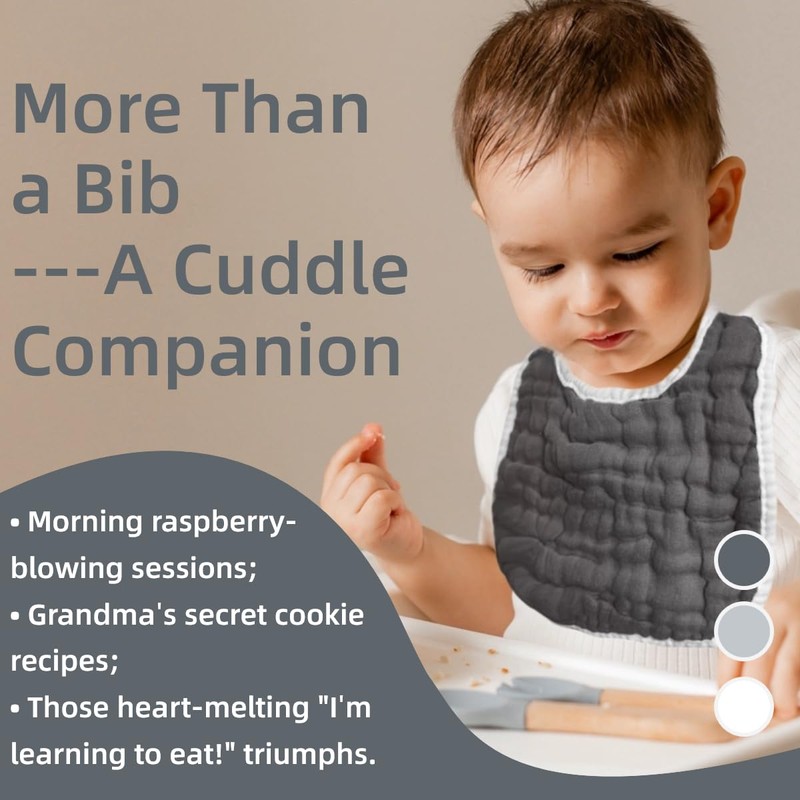 - VERSATILE DESIGN: These soft muslin cotton bibs and burp cloths are perfect for drooling, teething, and feeding your baby.