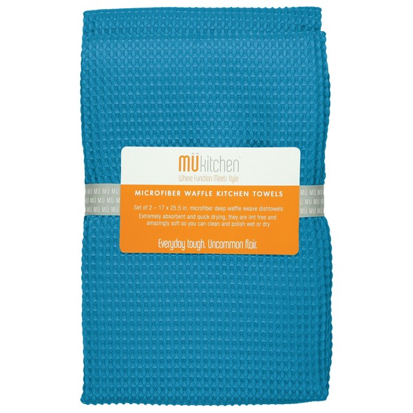 MUkitchen | Waffle Microfiber Towel | Durable & Absorbent for Cleaning & Drying | Set of 2 | Sea Blue