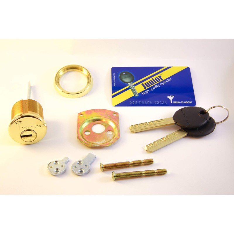 Mul-T-Lock Junior Rim & Mortise Cylinder - 2 Keys, High Security, Brass