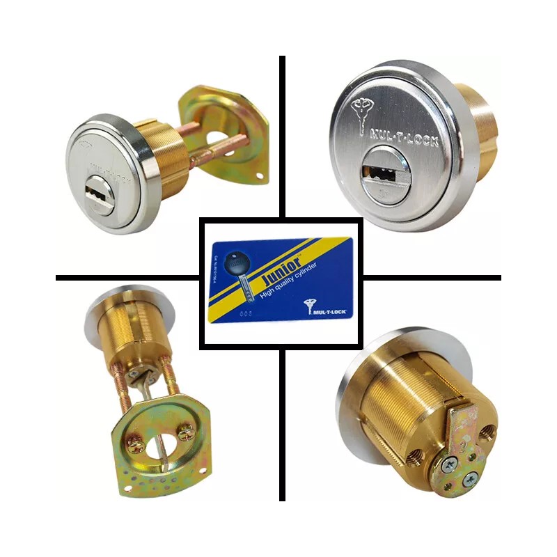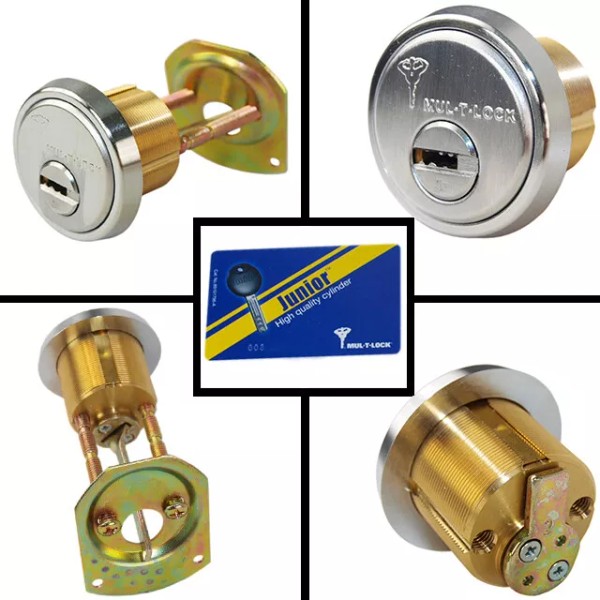 Mul-T-Lock Junior Satin Chrome Rim/Mortise Cylinder With 2 Keys - Keyed Alike