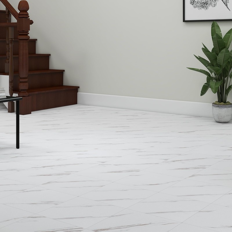 MULGREAT 12''x12'' Peel and Stick PVC Vinyl Floor Tiles, 20pcs, 20 Sq. Ft, Easy to Install for Bathroom, Kitchen, Home Decoration White Marble