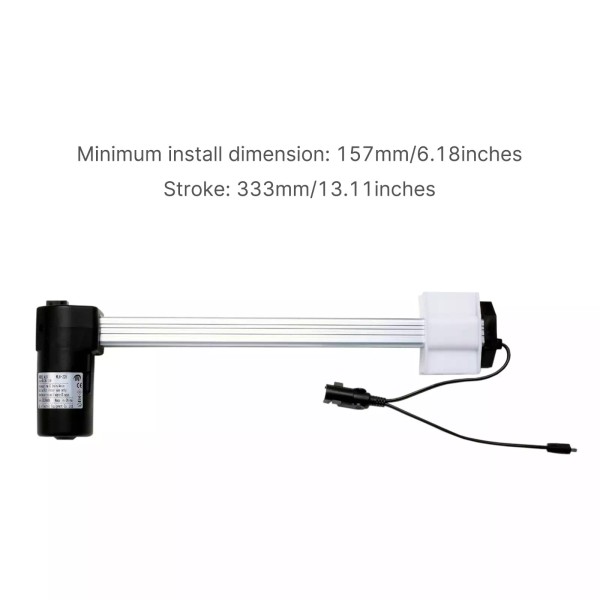 - Storke: 333mm/13.11inches, Minimum install dimenson: 157mm/6.18inches