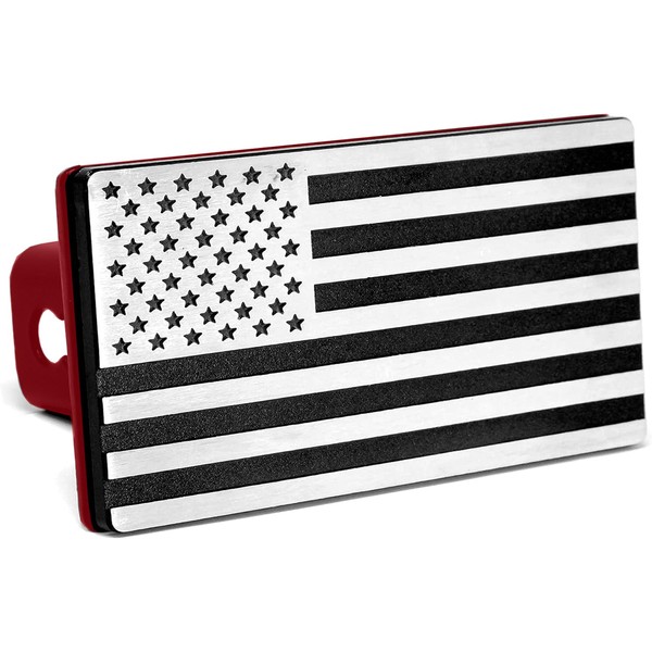 MULL American Flag Aluminum Trailer Hitch Cover (Fits 2.5" Receiver, Chrome & Black 7"x4")