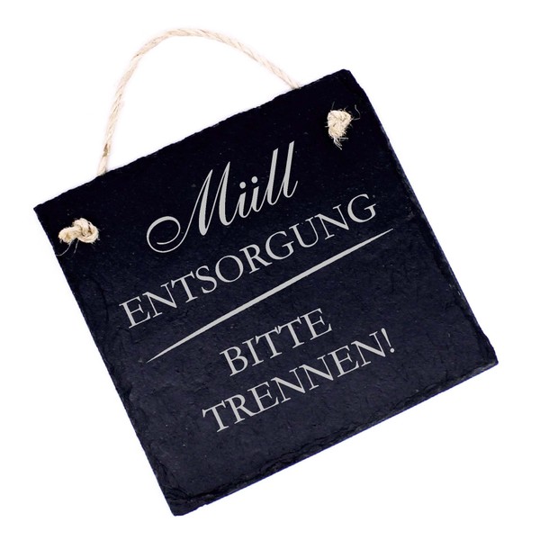 Müll Disposal Sign Slate Plaque Engraved Rubbish Corner Waste Separation Sign 11 x 11 cm