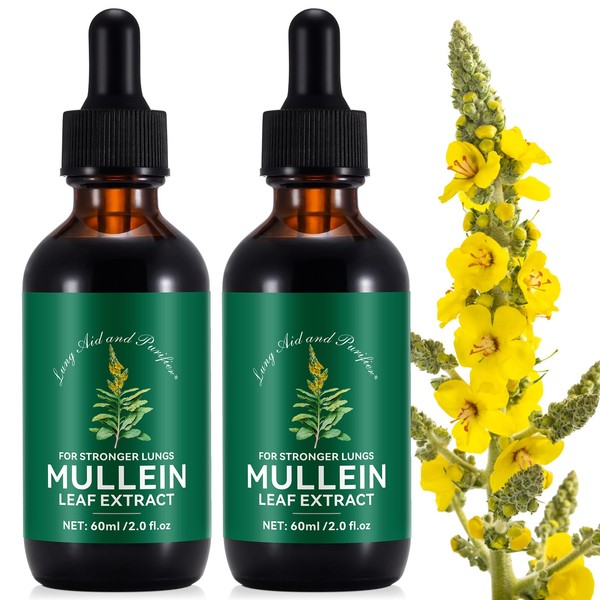 Mullein Leaf Extract for Lungs, Mullein Drops for Lungs, Natural Mullein Leaf Drops for Smokers,Cleanse & Respiratory Function for Lungs (2 PCS)