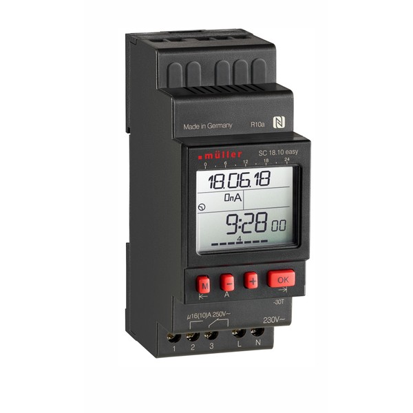 - Müller 22274. The entire switching program is visible at a glance. Optimised consumption: 0.2 W in standby mode. Large illuminated display with a text line. Programmable via smartphone via NFC (free Android app). Contents: 1 piece