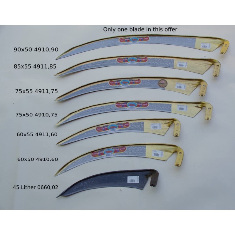 - The blade is curved to keep the cutting edge off the ground, 2 Sweeps to choose from 50 or 55.