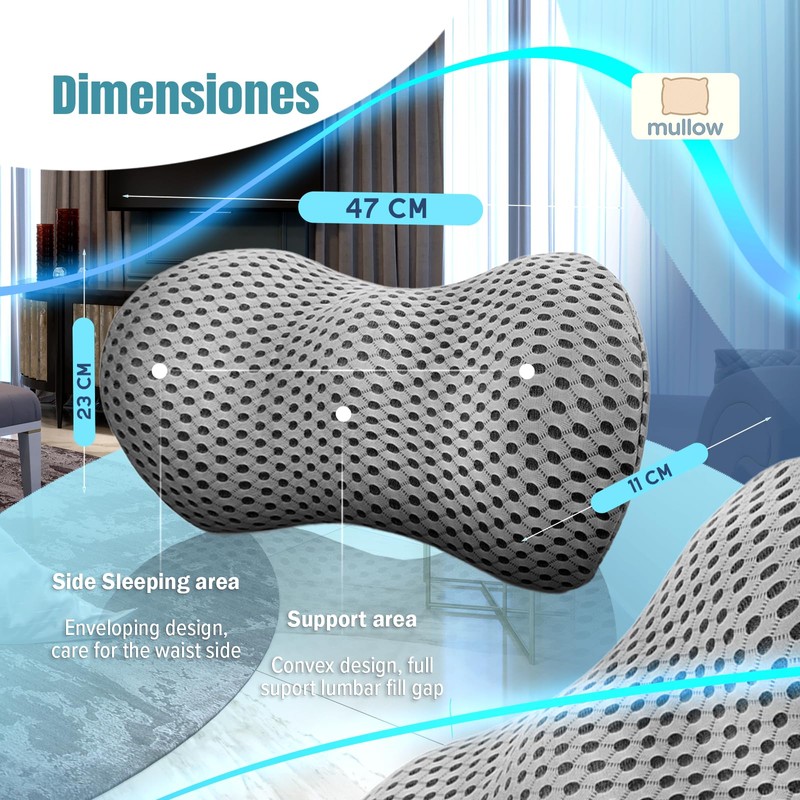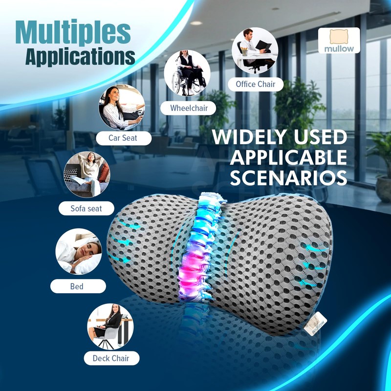 - 🚗 Versatile Use Anywhere – Use the Mullow Lumbar Support Pillow for car, office chair, home, or bed. Its compact size makes it easy to carry and install on any seat or cushion.