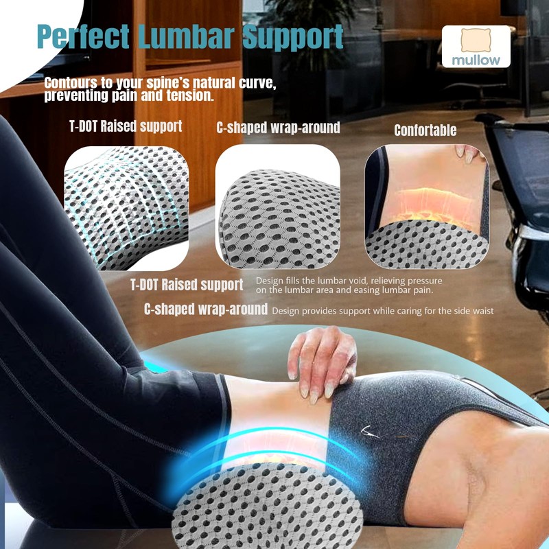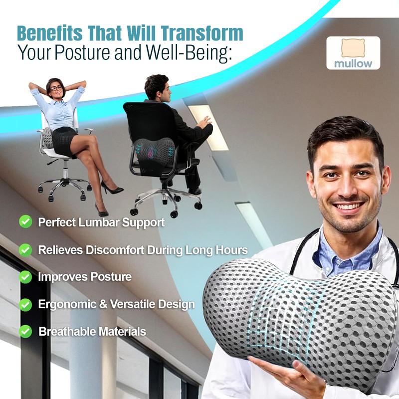 - 🪑 Ergonomic Back Support – The Mullow Lumbar Support Pillow for Office Chair is expertly shaped for natural spine alignment and posture. Perfect for everyday use in your office chair or home setup.