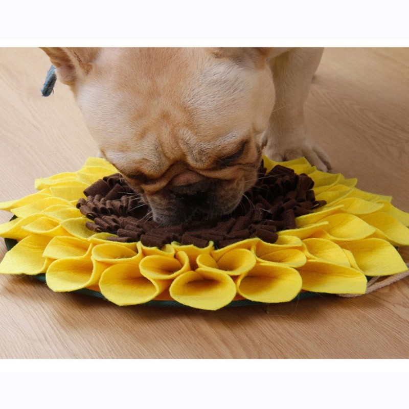 Muloo Dog Snuffle Mat Interactive Puzzle Feeders Slow Feeding Toy Sunflower Shape Improving Intelligence for Rabbit Puppies Dog Foraging Snuffle Mat Yellow+Brown, Approx. 38x38cm/14.96x14.96in
