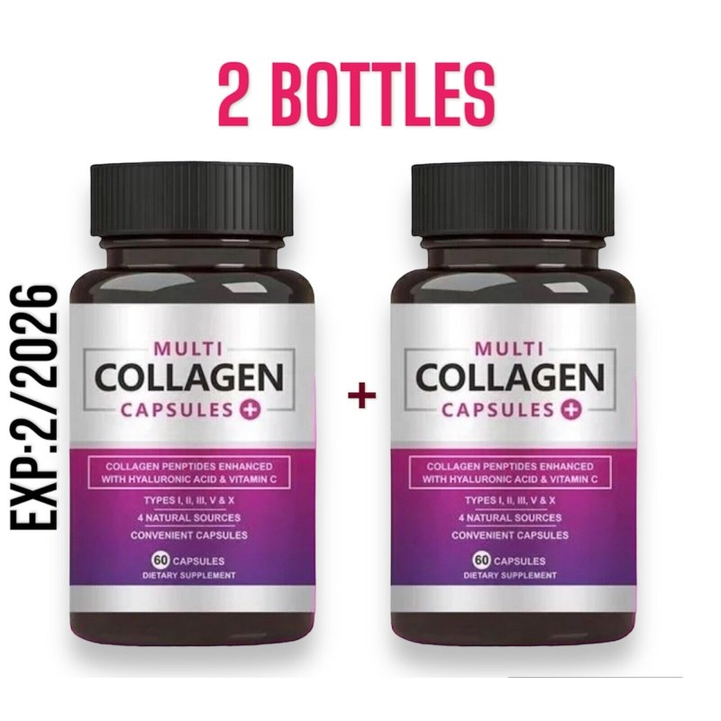 2 Bottles MULTI COLLAGEN CAPSULES + VITAMIN C | 1650+ MG TYPES I, II, III, v & x | 120 Capsules