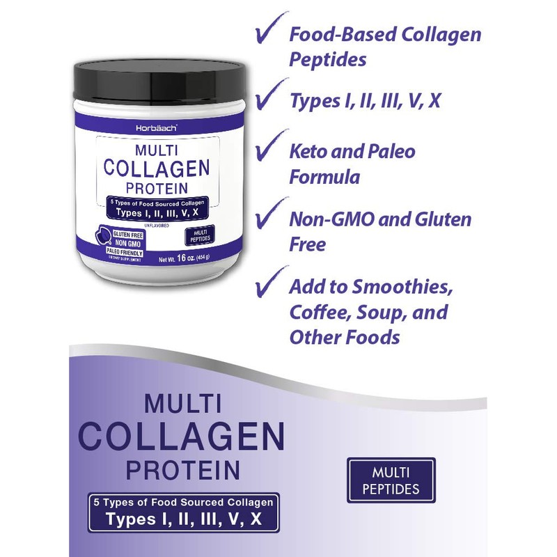 Multi Collagen Powder 16 oz | Type I, II, III, V, X | Hydrolyzed Collagen Peptide Protein Powder | Keto & Paleo Friendly | Unflavored | Non-GMO, Gluten Free | by Horbaach