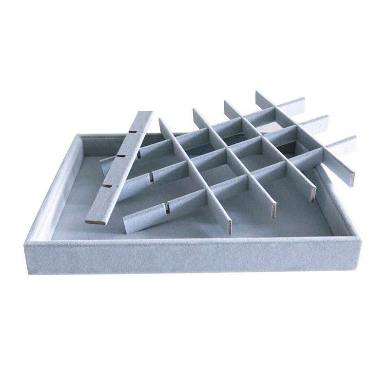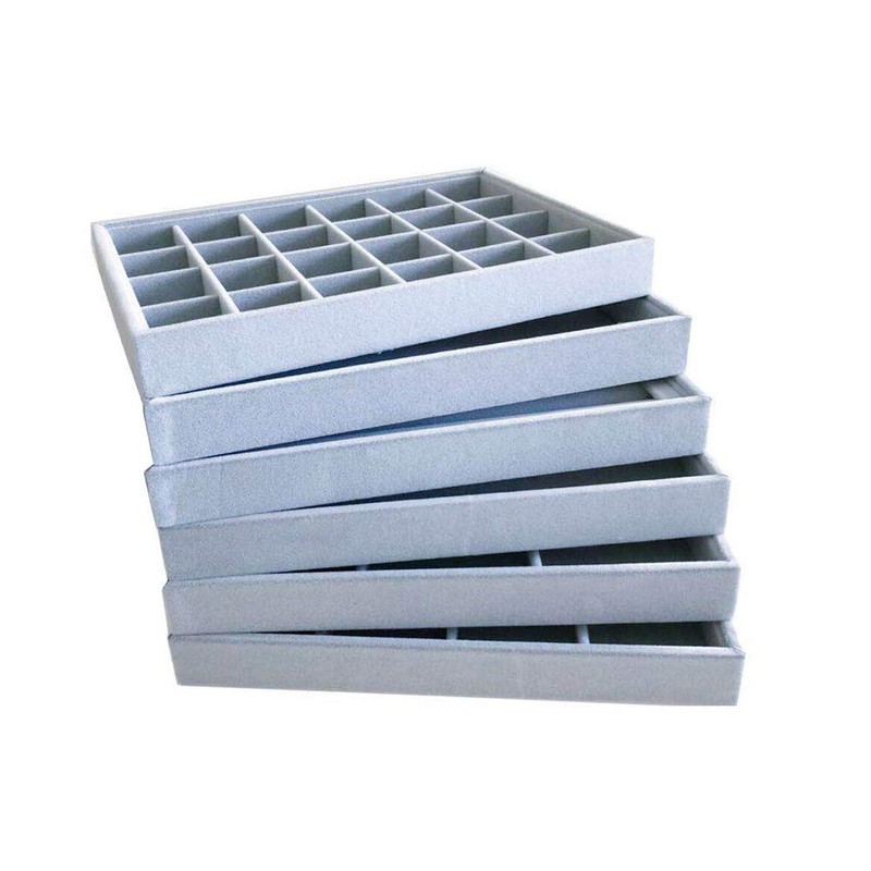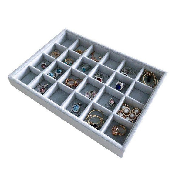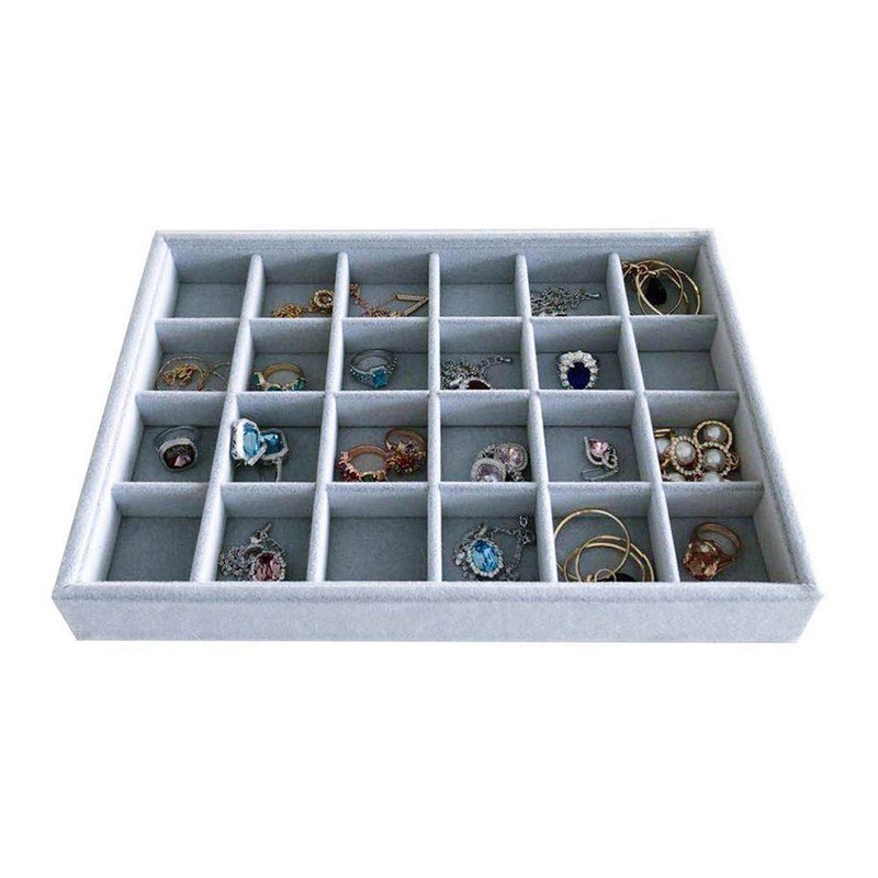 Multi Function Practical Drawer Organizer Jewelry Show Tray Home Store Premium Grade Grey Velvet Stackable Organizer Closet Storage Removable 24-Grid Jewelery Collection Protection Small Space Divider