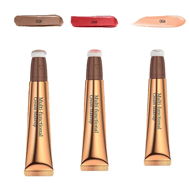 Multi-functional Contour Pen Set, Liquid Highlighter, Blush and Concealer with Pillow Applicator, High Coverage, 3 Pieces (2+4+6)