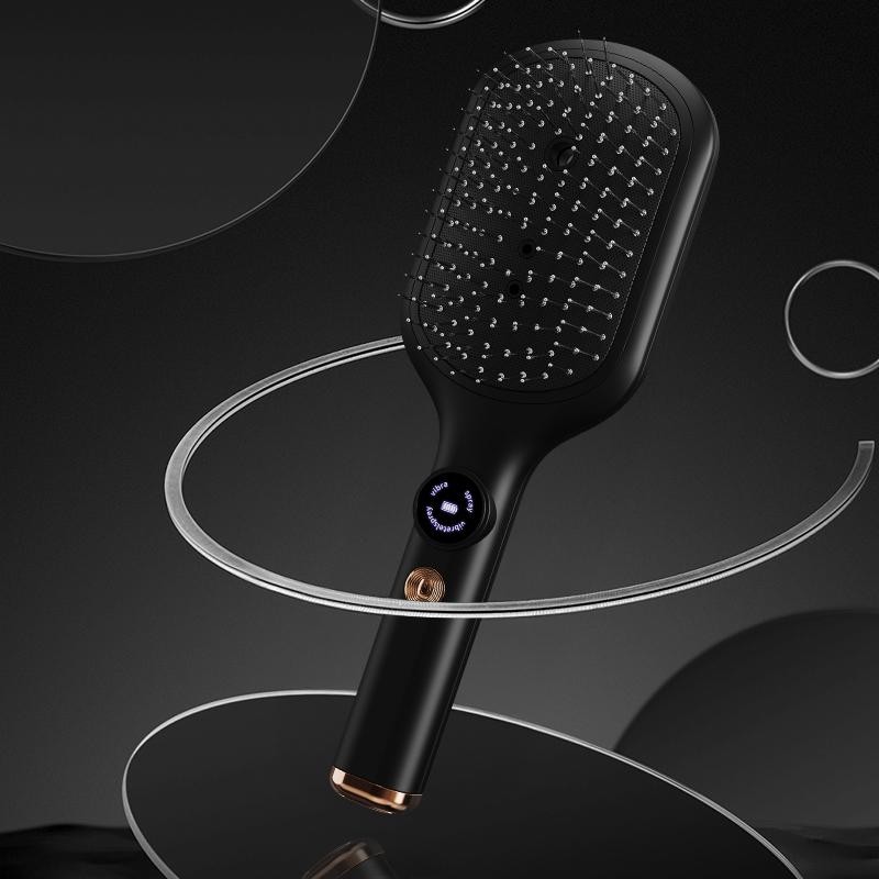 Multi-Functional Detangling Brush, Hair Scalp Massager with Mist, Gentle Bristles,Vibration & Nourishing Oil Chamber:_Black_Lonic