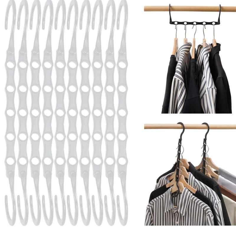 Multi Hangers Space Saving for Clothes, Sturdy Stackable Hangers with 5 Holes, Ideal Magic Hangers for Dorm Room Closet 10 Pack,White