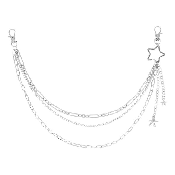 Multi Layer Pants Chain, Stylish Star Silver Jeans Chain with Lobster Clasps Hip Hop Punk Wallet Purse Keychain Belt Loop Chains for Men Women Trousers Pocket Accessories