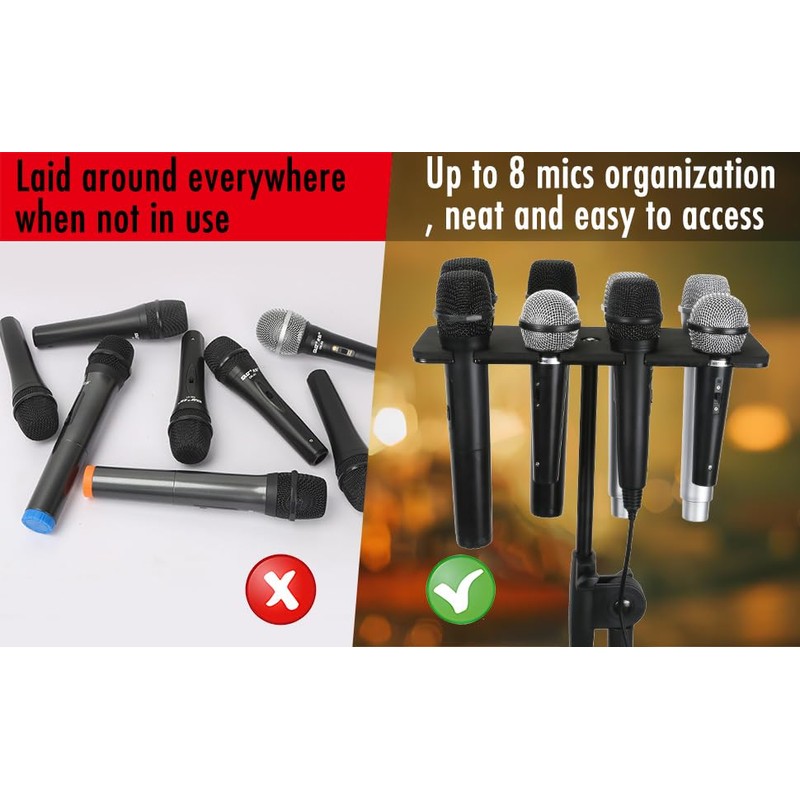 - ๐๐ณ๐ณ๐ถ๐ฐ๐ถ๐ฒ๐ป๐ ๐ข๐ฟ๐ด๐ฎ๐ป๐ถ๐๐ฎ๐๐ถ๐ผ๐ป - With this multi microphone holder, you only need 1 mic stand to store up to 8 mics, eliminating the hassle of having your mics scattered around when not in use