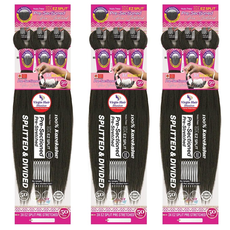 MULTI-PACK DEAL 3PACK! Janet Collection Nala Tress 3X EZ SPLIT Pre-Sectioned Pre-Stretched Braid Knotless Extremely light weight Premium Fiber 50inches 9Bundles (50”, Color #RM4/27/613)