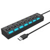 Multi Port Splitter, 7 Port USB 2.0 Hub, USB A Port Data Hub with Independent On/Off Switch and LED Indicators, Lights for Laptop, PC, Computer, Mobile HDD, Flash Drive and More (Black 2.0)