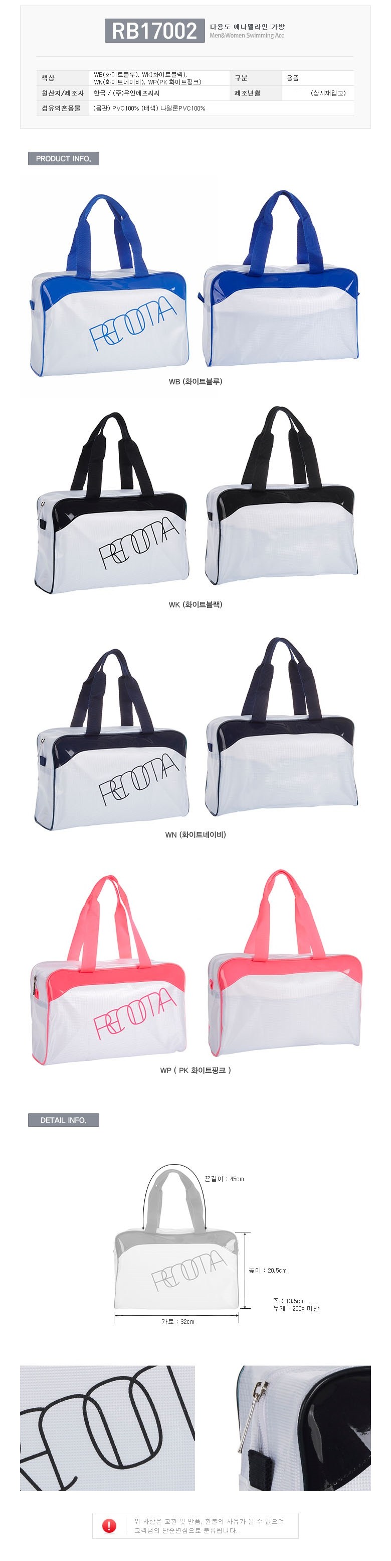 | 특이 사항 | 배송, 변경, 반품 환불에 대한 문의는 위 연락처로 문의 주세요. | ||