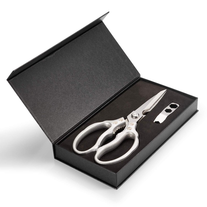 - Multi-functional scissors: kitchen shears have more functions. They can be used to meat scissors,scrape fish scales. Of course, they can be used to open bottles and crush walnuts or nuts. Clever scissors are also good gifts for mothers, wives, and friends! Give a gift of chef-grade scissors to any culinary enthusiast on the list; they will love the culinary scissors and they will thank you for this thoughtful and useful gift.