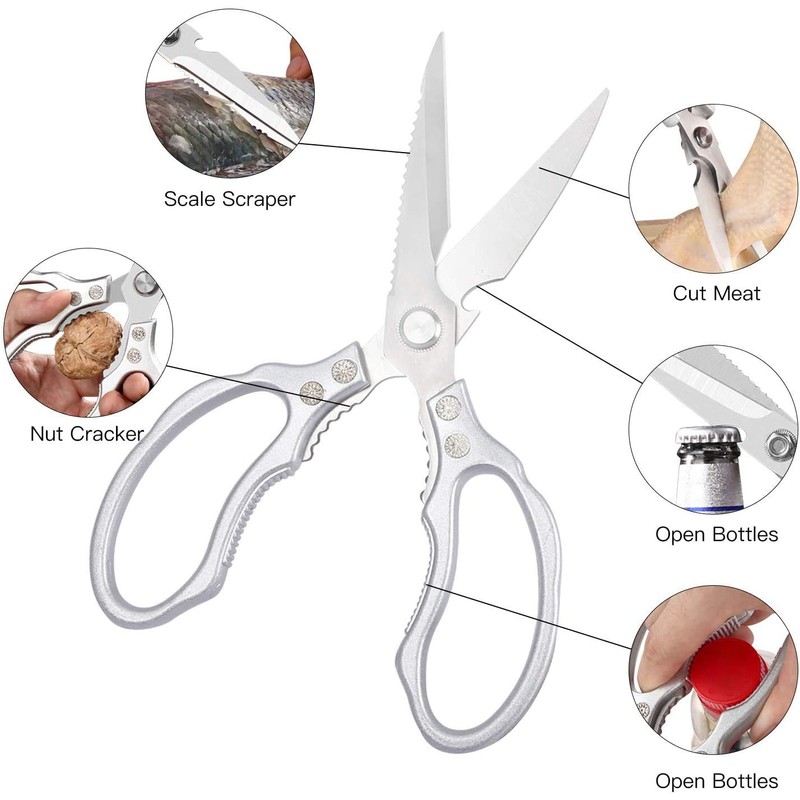 Multi Purpose Stainless Steel Kitchen Scissors Heavy Duty Kitchen Shears for Cutting Chicken, Meat, Fish, Vegetable, BBQ, Fruits, Seafood, Open Jars and Nut Cracker and Super Sharp(With Gadgets)