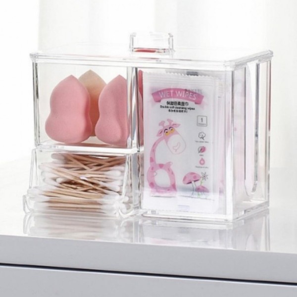 Multi-purpose Transparent Dust-Proof Storage Case for Cotton Pads and Swabs, Cosmetic Organizer Vanity