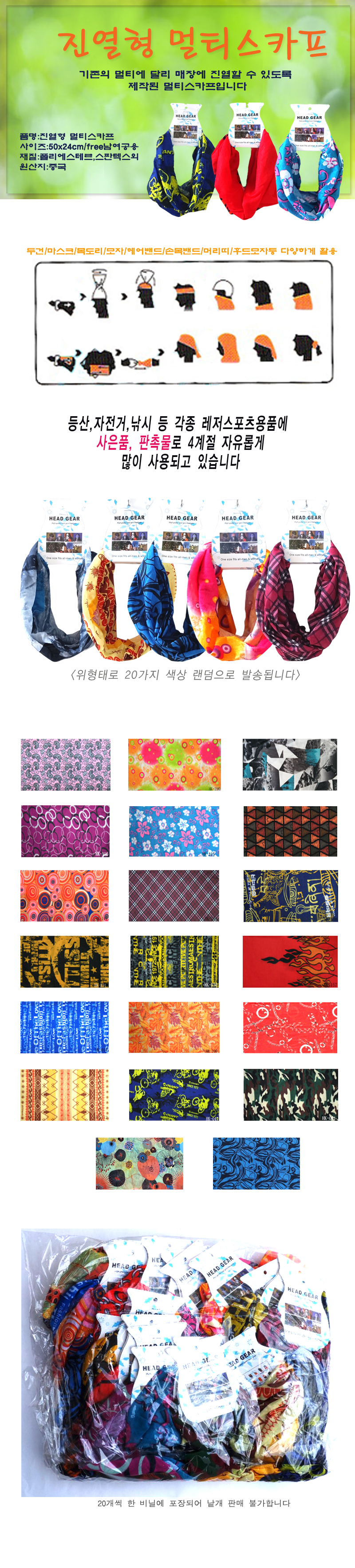 Multi-Scarf with Hanging Hook, Display-Ready Multi-Bandana Buff 20ea
