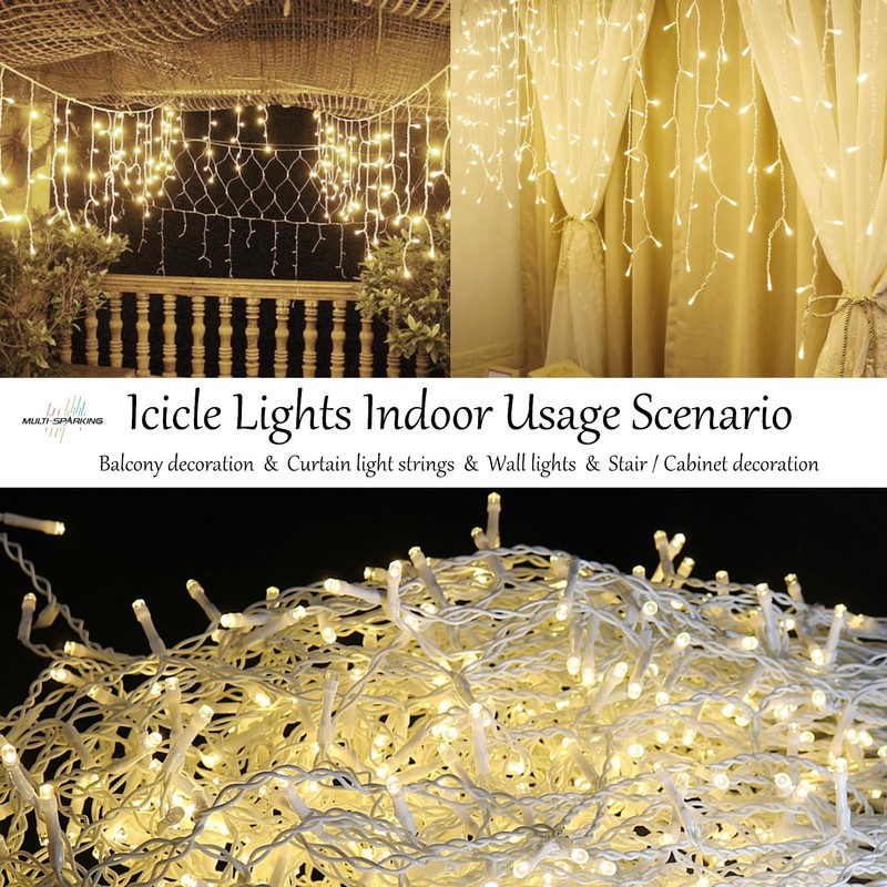 MULTI-SPARKING Christmas Icicle Lights Outdoor 58Ft 640 LED Warm White Icicle Christams Lights 120 Drops 8 Modes Icicle String Lights for Wedding Party Eaves Christmas Decorations