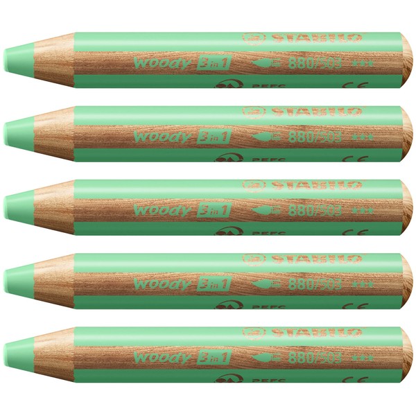 Multi-Talented Pencil - STABILO woody 3 in 1 - Pack of 5 - Pastel Green