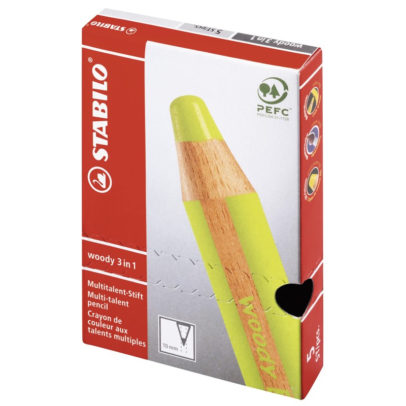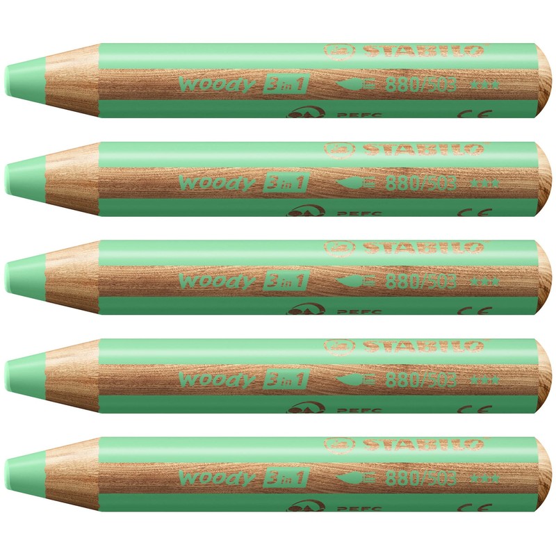 Multi-Talented Pencil - STABILO woody 3 in 1 - Pack of 5 - Pastel Green